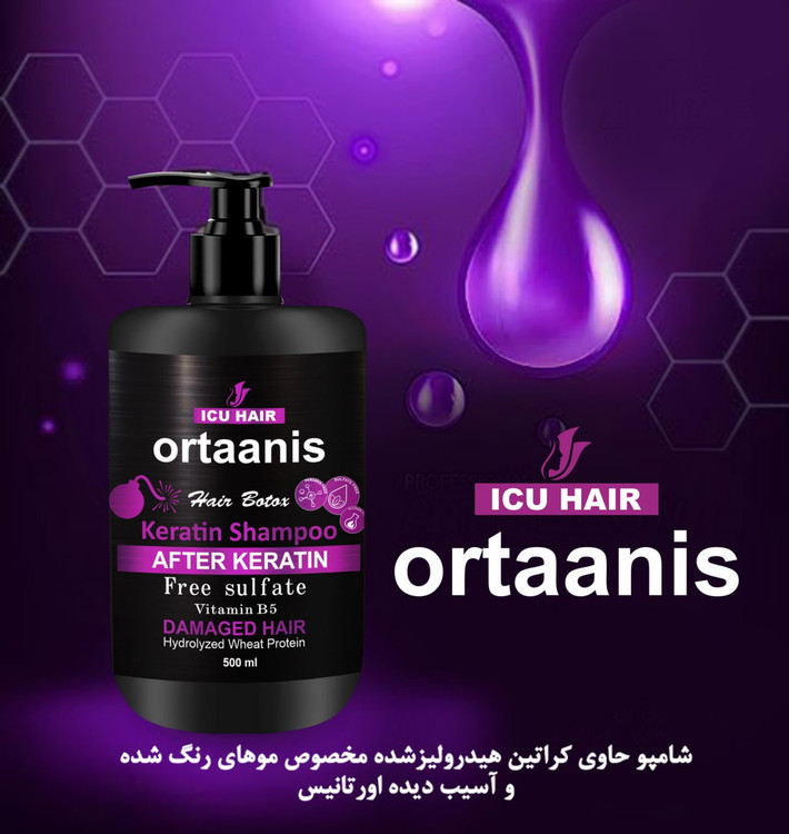 شامپو کراتین اورتانیس جزء این محصولات است؛ به عبارت بهتر حاوی کراتین هیدرولیز شده می باشد. این محصول مناسب موهای رنگ شده و آسیب دیده بوده و در حجم 500 میلی لیتر تولید شده است. با استفاده از این محصول می توانید خون رسانی به پوست سر را افزایش داده و از ریزش مو جلوگیری کنید.
